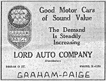 In 1928, Lord ended his affiliation with Hudson/Essex and became a distributor of the Graham-Paige line. His distribution area reached to distant small towns and villages in outstate Nebraska.